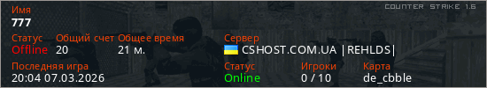 Играет на Counter Strike 1.6 сервере. Страна: УкраинаПервый раз замечен 12:52 06.03.2026