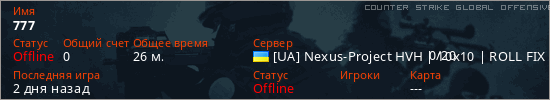 Играет на Counter Strike Global Offensive сервере. Страна: УкраинаПервый раз замечен 11:38 11.01.2026