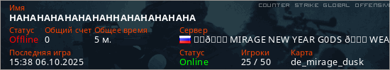 Играет на Counter Strike Global Offensive сервере. Страна: РоссияПервый раз замечен 12:23 06.10.2025