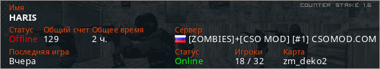 Играет на Counter Strike 1.6 сервере. Страна: РоссияПервый раз замечен 10:12 08.08.2025