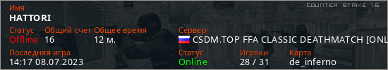 Играет на Counter Strike 1.6 сервере. Страна: РоссияПервый раз замечен 14:12 08.07.2023