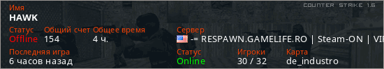 Играет на Counter Strike 1.6 сервере. Страна: СШАПервый раз замечен 02:15 21.12.2025
