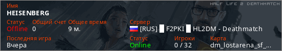 Играет на Half Life 2 DeathMatch сервере. Страна: РоссияПервый раз замечен 18:29 08.01.2026