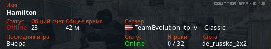 Играет на Counter Strike 1.6 сервере. Страна: ЛатвияПервый раз замечен 22:10 08.02.2026