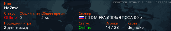 Играет на Counter Strike Global Offensive сервере. Страна: РоссияПервый раз замечен 18:45 22.02.2026