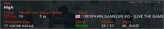 Играет на Counter Strike 1.6 сервере. Страна: СШАПервый раз замечен 16:37 29.03.2026