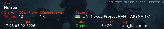 Играет на Counter Strike Global Offensive сервере. Страна: УкраинаПервый раз замечен 23:02 04.02.2026