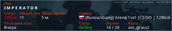 Играет на Counter Strike Global Offensive сервере. Страна: РоссияПервый раз замечен 09:55 06.03.2026