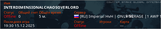 Играет на Counter Strike Global Offensive сервере. Страна: РоссияПервый раз замечен 18:59 15.12.2025