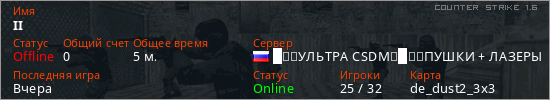 Последний раз был в сети Вчера Игрок с таким ником замечен на 22 серверах
