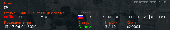 Последний раз был в сети 15:17 06.01.2026 Игрок с таким ником замечен на 9 серверах