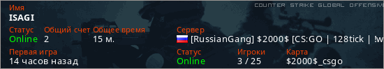Играет на Counter Strike Global Offensive сервере. Страна: РоссияПервый раз замечен 23:16 26.04.2026