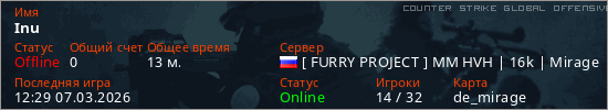 Играет на Counter Strike Global Offensive сервере. Страна: РоссияПервый раз замечен 07:21 06.03.2026
