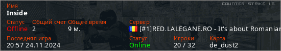 Играет на Counter Strike 1.6 сервере. Страна: РумынияПервый раз замечен 18:34 31.10.2024
