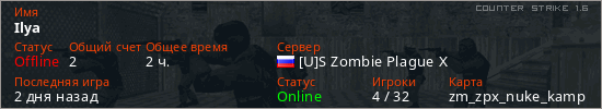 Играет на Counter Strike 1.6 сервере. Страна: РоссияПервый раз замечен 18:34 01.07.2023