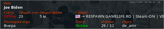 Играет на Counter Strike 1.6 сервере. Страна: СШАПервый раз замечен 15:25 29.01.2026