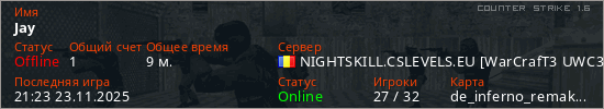 Последний раз был в сети 21:23 23.11.2025 Игрок с таким ником замечен на 12 серверах