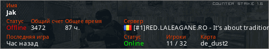Играет на Counter Strike 1.6 сервере. Страна: РумынияПервый раз замечен 17:03 06.05.2022