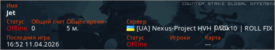 Играет на Counter Strike Global Offensive сервере. Страна: УкраинаПервый раз замечен 16:46 11.04.2026