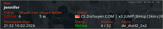 Играет на Counter Strike 1.6 сервере. Страна: ГерманияПервый раз замечен 21:29 10.02.2026