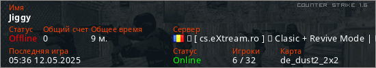 Играет на Counter Strike 1.6 сервере. Страна: РумынияПервый раз замечен 16:32 11.04.2025