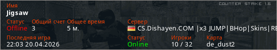 Играет на Counter Strike 1.6 сервере. Страна: ГерманияПервый раз замечен 21:48 20.04.2026