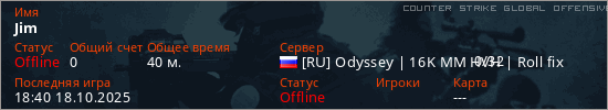 Играет на Counter Strike Global Offensive сервере. Страна: РоссияПервый раз замечен 19:28 04.08.2025