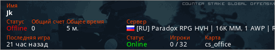 Играет на Counter Strike Global Offensive сервере. Страна: РоссияПервый раз замечен 12:55 05.12.2025