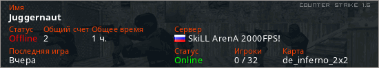 Последний раз был в сети Вчера Игрок с таким ником замечен на 20 серверах