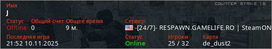 Играет на Counter Strike 1.6 сервере. Страна: СШАПервый раз замечен 22:26 07.10.2025