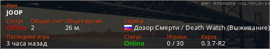 Играет на San Andreas Multiplayer сервере. Страна: РоссияПервый раз замечен 10:50 17.03.2026