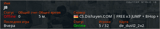 Играет на Counter Strike 1.6 сервере. Страна: ГерманияПервый раз замечен 07:51 12.02.2026