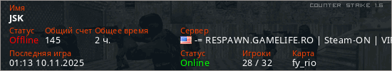 Играет на Counter Strike 1.6 сервере. Страна: СШАПервый раз замечен 11:47 19.07.2025