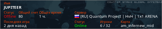 Играет на Counter Strike Global Offensive сервере. Страна: РоссияПервый раз замечен 19:31 22.03.2026