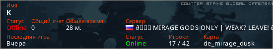 Играет на Counter Strike Global Offensive сервере. Страна: РоссияПервый раз замечен 12:02 30.03.2025