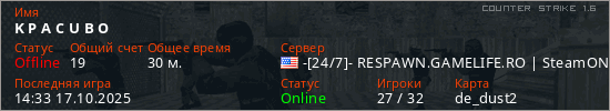 Последний раз был в сети 14:33 17.10.2025 Игрок с таким ником замечен на 49 серверах