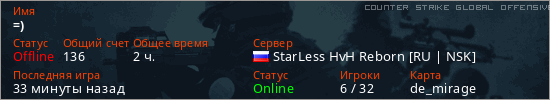 Играет на Counter Strike Global Offensive сервере. Страна: РоссияПервый раз замечен 01:35 11.10.2025