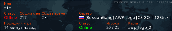 Играет на Counter Strike Global Offensive сервере. Страна: РоссияПервый раз замечен 20:32 19.03.2026