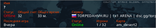 Играет на Counter Strike Global Offensive сервере. Страна: РоссияПервый раз замечен 15:02 25.03.2026