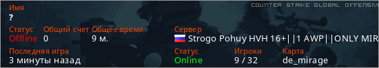 Играет на Counter Strike Global Offensive сервере. Страна: РоссияПервый раз замечен 21:25 04.12.2025