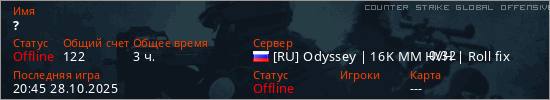 Играет на Counter Strike Global Offensive сервере. Страна: РоссияПервый раз замечен 11:00 05.04.2025