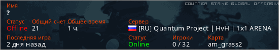 Играет на Counter Strike Global Offensive сервере. Страна: РоссияПервый раз замечен 13:11 25.03.2026