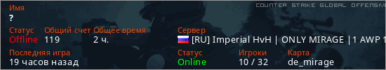 Играет на Counter Strike Global Offensive сервере. Страна: РоссияПервый раз замечен 15:47 06.08.2025