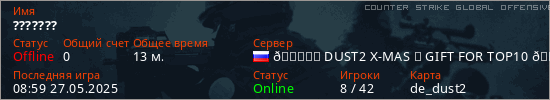 Играет на Counter Strike Global Offensive сервере. Страна: РоссияПервый раз замечен 13:58 08.04.2025