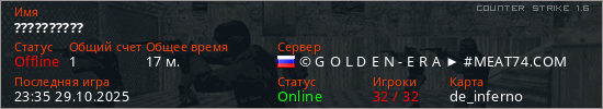 Играет на Counter Strike 1.6 сервере. Страна: РоссияПервый раз замечен 04:18 04.07.2025