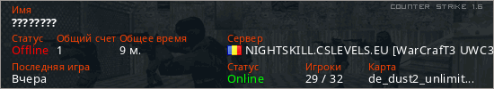 Последний раз был в сети Вчера Игрок с таким ником замечен на 26 серверах