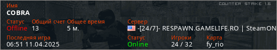 Играет на Counter Strike 1.6 сервере. Страна: СШАПервый раз замечен 06:31 11.04.2025