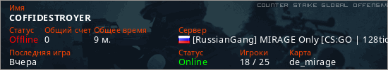 Играет на Counter Strike Global Offensive сервере. Страна: РоссияПервый раз замечен 07:32 09.12.2025