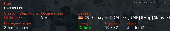 Последний раз был в сети 2 дня назад Игрок с таким ником замечен на 19 серверах