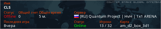 Играет на Counter Strike Global Offensive сервере. Страна: РоссияПервый раз замечен 09:54 22.03.2026
